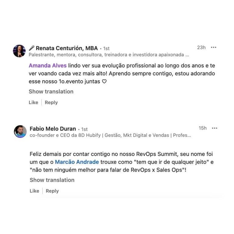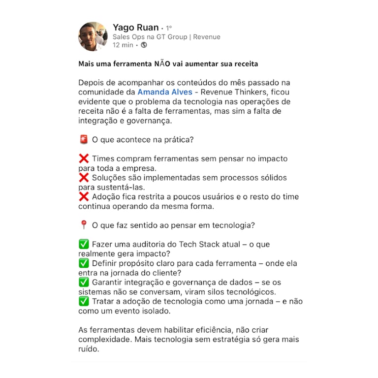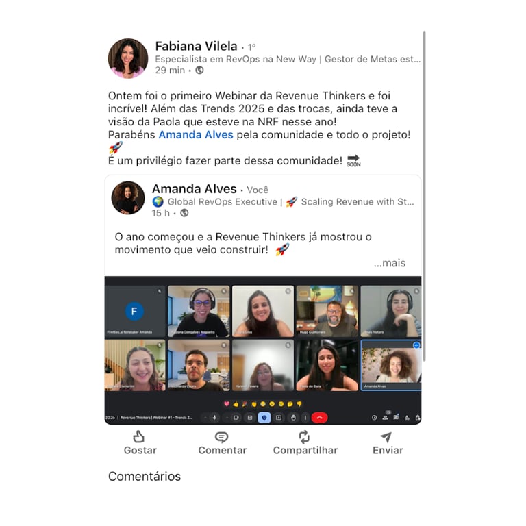 Aqui você encontra consistência, profundidade e conexão real com profissionais sérios. Liderada por Amanda Alves, referência em RevOps no Brasil.